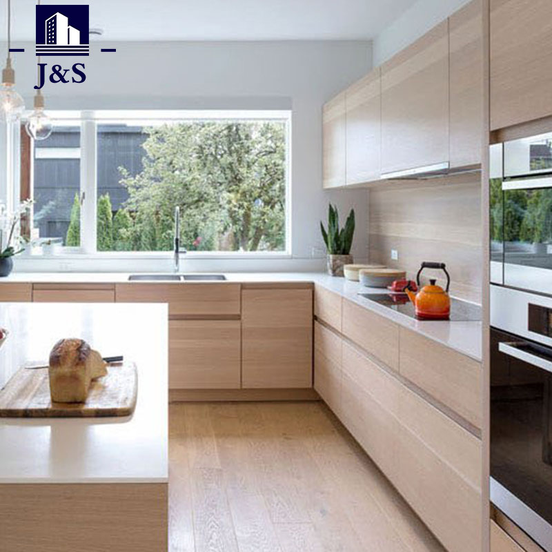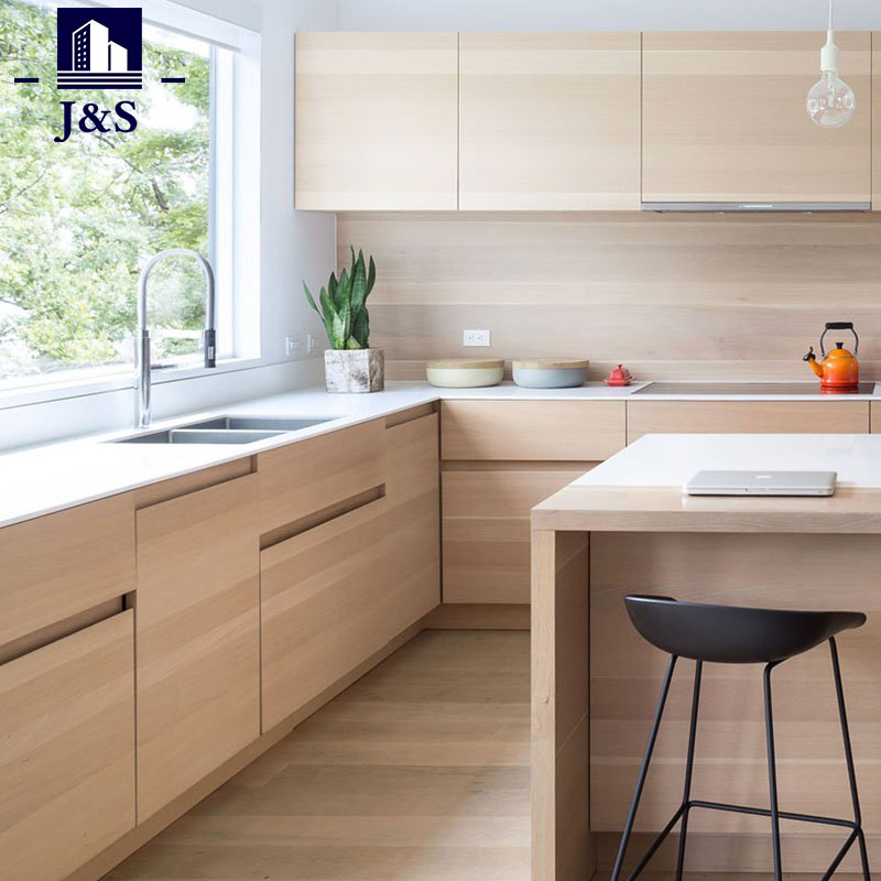ఈ కిచెన్ క్యాబినెట్ యొక్క తేలికపాటి చెక్క రేణువు, అలాగే పైన ఉన్న తెల్లటి కిచెన్ క్యాబినెట్లు వంటగదిని మరింత శుభ్రంగా మరియు చక్కగా కనిపించేలా చేస్తాయి. అంతేకాకుండా, కిచెన్ క్యాబినెట్ ఒక ఇంటి అనుభూతిని కలిగి ఉంటుంది, ఇది వంటగదిలో వంట చేసేటప్పుడు మిమ్మల్ని మంచి మూడ్లో ఉంచుతుంది. అమ్మకానికి ఉన్న కిచెన్ క్యాబినెట్ శక్తివంతమైన నిల్వ ఫంక్షన్ను కలిగి ఉంది మరియు నిల్వ స్థలం ప్రతిచోటా చూడవచ్చు, తద్వారా మీ వంటగది పాత్రలు బాగా ఉంచబడతాయి. ఇక్కడ చూపిన రంగు మరియు ఆకారమే కాకుండా, మీరు మీ అవసరాలకు అనుగుణంగా మీ కొత్త కిచెన్ క్యాబినెట్ను విభిన్న ఆకారం లేదా రంగులలో అనుకూలీకరించవచ్చు. ఇప్పుడు చక్కని కస్టమ్ కిచెన్ క్యాబినెట్ని పొందడానికి మా నిపుణుడిని సంప్రదించడానికి సంకోచించకండి!