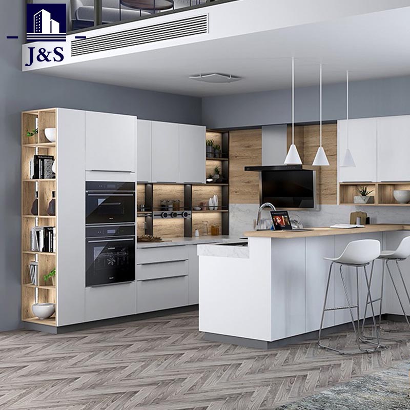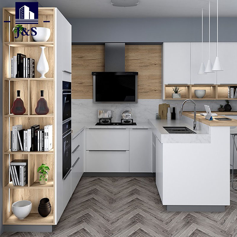 J&S సప్లై రెడీ బిల్ట్ కిచెన్ క్యాబినెట్ కప్బోర్డ్లు, ఇది U ఆకారపు కిచెన్ డిజైన్. J&S కిచెన్ క్యాబినెట్, వార్డ్రోబ్, హౌసింగ్ ప్రాజెక్ట్ కోసం అనుకూలమైన క్యాబినెట్లలో పోటీ ధర మరియు సౌకర్యవంతమైన సేవతో ప్రత్యేకించబడింది.
