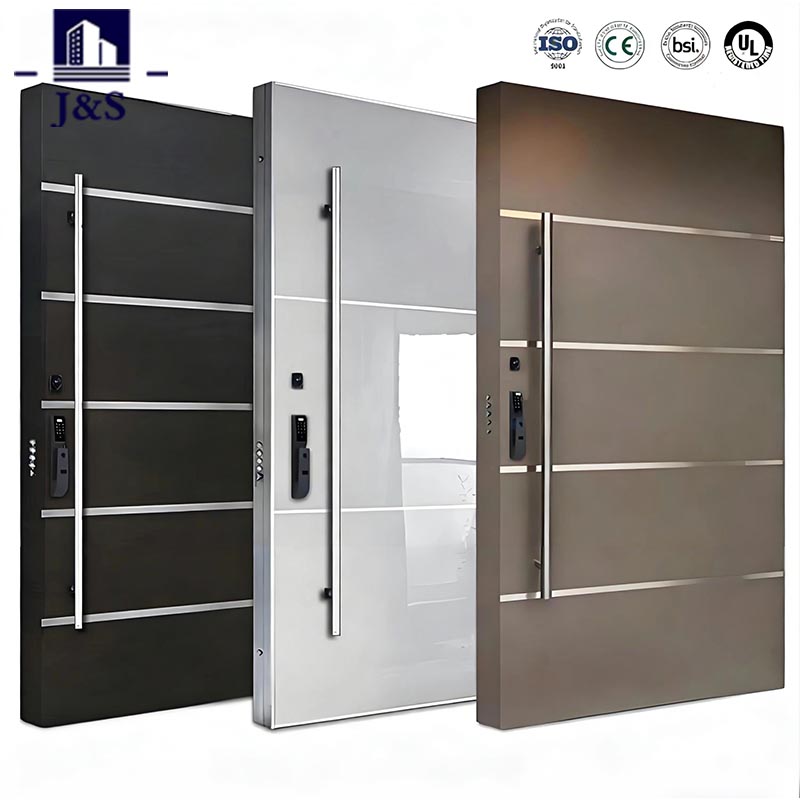 J&S నుండి స్టీల్ సేఫ్టీ డోర్తో మీ ఎంట్రీని ఎలివేట్ చేయండి, విశ్వసనీయ చైనా తయారీదారు ద్వారా పోటీ ధరలో అందించబడుతుంది. ఆధునిక మినిమలిస్ట్ సౌందర్యంతో బలమైన భద్రతను కలపడం, ఇది సొగసైన క్షితిజ సమాంతర మెటల్ స్ట్రిప్స్ మరియు మన్నికైన స్టెయిన్లెస్ స్టీల్ ఫ్రేమ్ను కలిగి ఉంది. యాంటీ-థెఫ్ట్ ప్రొటెక్షన్ మరియు వాతావరణ నిరోధకత కోసం రూపొందించబడిన ఈ స్టీల్ సేఫ్టీ డోర్ నివాస మరియు వాణిజ్య ప్రవేశాలకు సరైనది. దీని అధునాతన మాట్టే ముగింపు సమకాలీన బాహ్య భాగాలను పూరిస్తుంది, అయితే మృదువైన, సులభంగా శుభ్రం చేయగల ఉపరితలం దీర్ఘకాల ప్రకాశాన్ని నిర్ధారిస్తుంది. అత్యున్నత భద్రతా ప్రమాణాలకు అనుగుణంగా, ఇది మీ డోర్వేకి సరిగ్గా సరిపోయేలా అనుకూలీకరించిన పరిమాణాలలో అందుబాటులో ఉంది, విశ్వసనీయ సరఫరాదారు లేదా ఫ్యాక్టరీ మూలాన్ని కోరుకునే కొనుగోలుదారులకు ఇది ఆదర్శవంతమైన ఎంపిక.